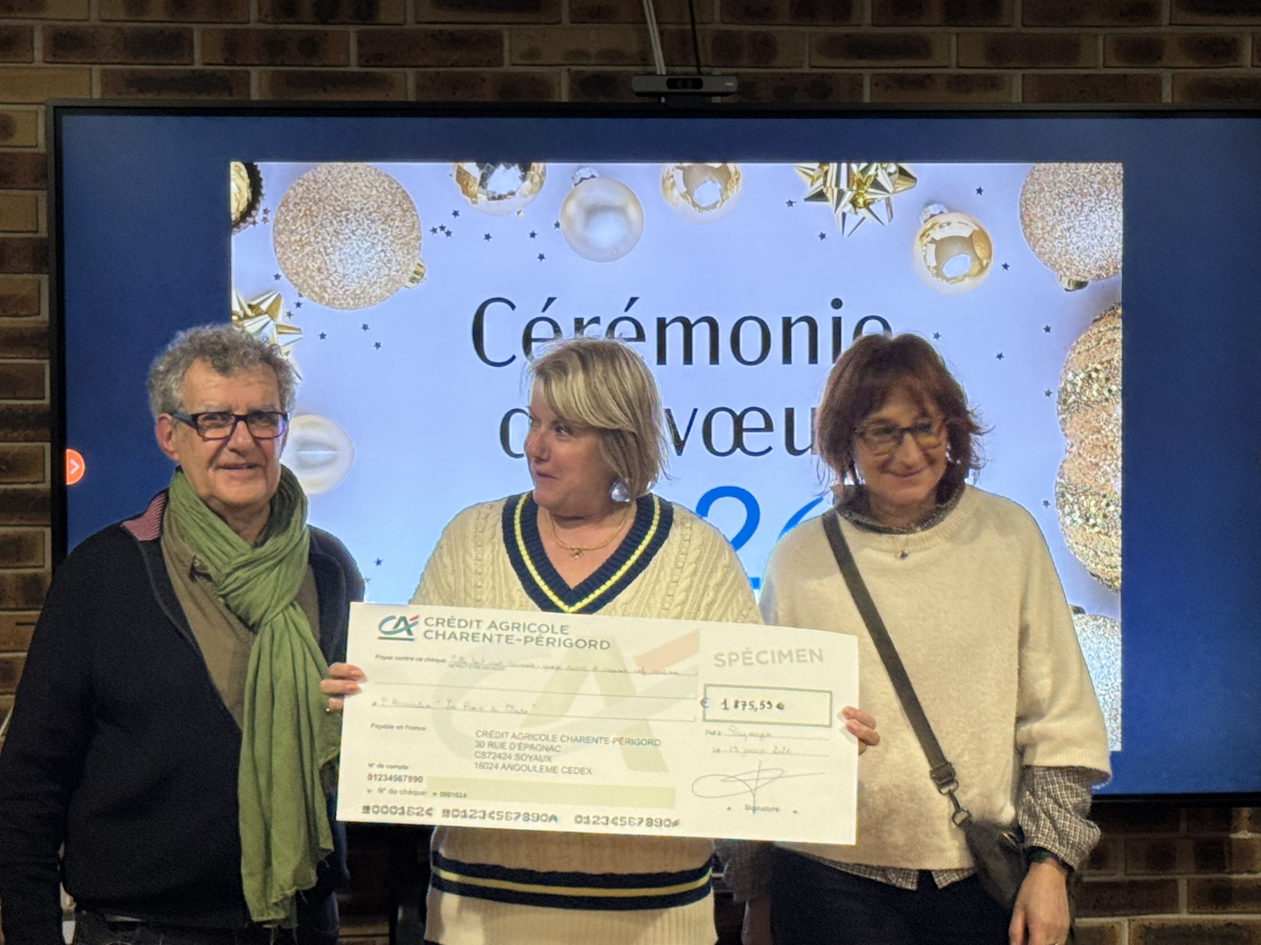 Organisation de l’opération « Chassons le cancer » : les chasseurs ont du cœur. Remerciements aux organisateurs et remise du chèque d’un montant de 1 875,96 € à l’association Les Amis de Claire.